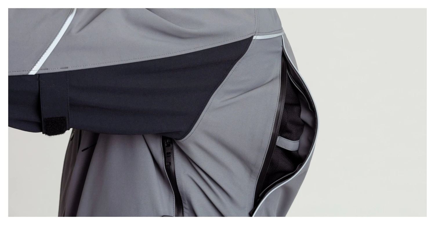 A two-way front zipper on the Divide Jacket allows the wearer to adjust the bottom hem while seated. In an effort to think of everything, branded snaps with thumb loops on the front placket enable the rider to easily close the jacket with one hand, gloves on or not. In case you encounter a rainstorm, the jacket features an interior gaiter at the neck that can be cinched down to prevent water from getting in. There is also lamb-leather detailing at the neck opening for additional comfort. The Divide Motorcycle Jacket also features plenty of storage options, including chest, hand, and patch pockets with weatherproof zippers, as well as an interior zippered pocket. The Divide Jacket is equipped with pads featuring D3O technology at the chest, elbow, shoulder, and back, all of which are CE-certified and completely removable. For maximum comfort, the elbow pockets are adjustable. Adjustable VELCRO® brand tabs at the bicep, forearm, and waist allow the jacket to be cinched down for a slim fit or loosened when cold temps call for extra layers. Additionally, VELCRO® cuffs can be adjusted to accommodate gloves, and a wind-cuff detail at the sleeve opening helps keep the elements out. Finally, a cinch at the bottom opening of the jacket allows the rider to customize the fit. Designed in tandem with the Divide Motorcycle Pant, a zipper attachment allows the two pieces to be worn together as a full body suit.
