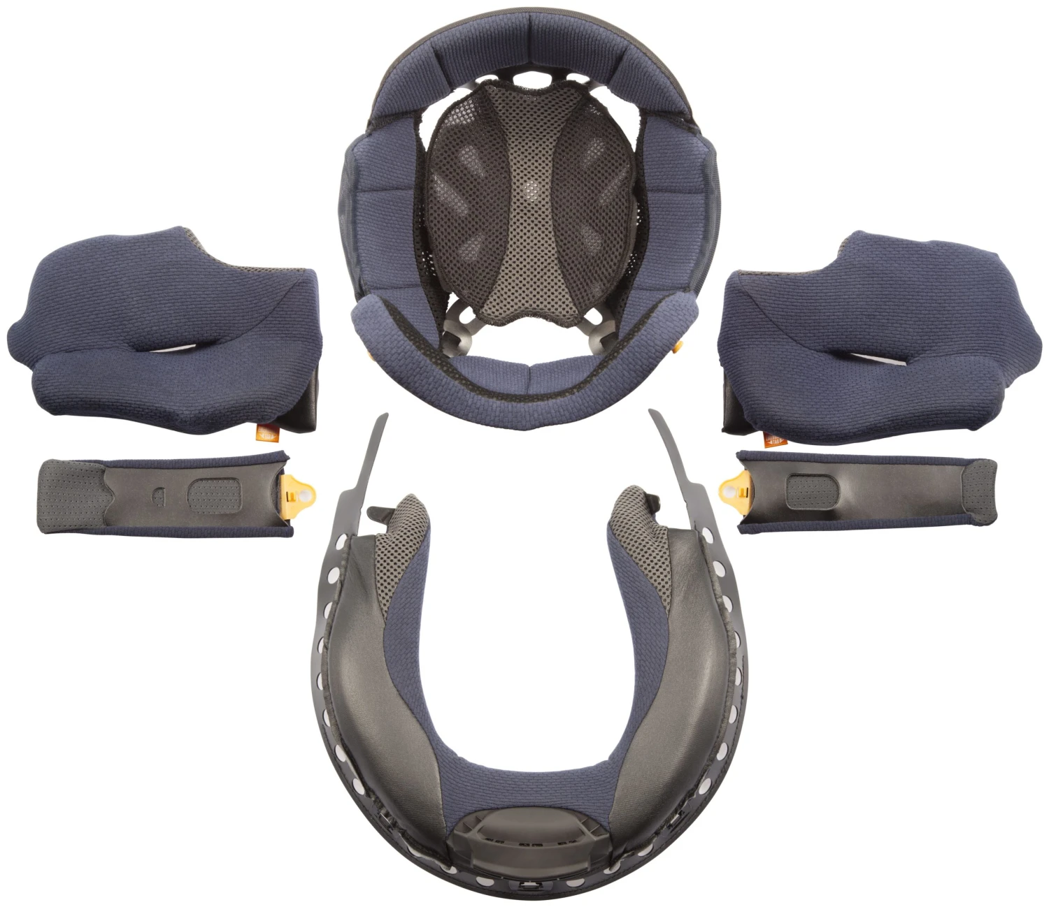 The Arai Corsair X Motorcycle Helmet features a chin curtain that helps to block air intrusion from the turbulent air underneath the helmet, as well as increases negative pressure to enhance the exhaust ventilation performance. The interior lining includes Arai’s signature 5mm peel away ear pocket padding and ear pocket recess to accommodate communicator speakers.