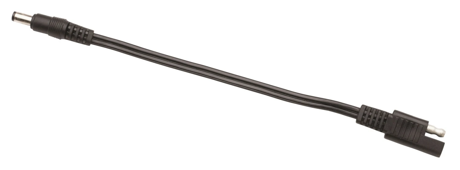 Coax Plug Adapter Cable with 6 inches of 16 AWG wire and SAE connector. Connect a Firstgear Coax Heat-Troller to clothing with an SAE connector or a battery tender unit to a coax battery harness.