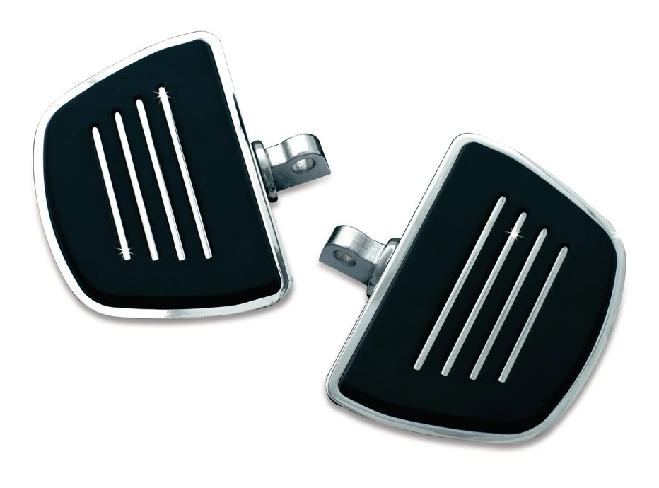 The compact size of a footpeg with the comfort of a floorboard. The rubber inserts isolate the foot from vibration on long rides. The splined adapter ends on the boards let you position the boards at the ideal angle and location for comfort. Can be used in either the driver, passenger or highway bar position.