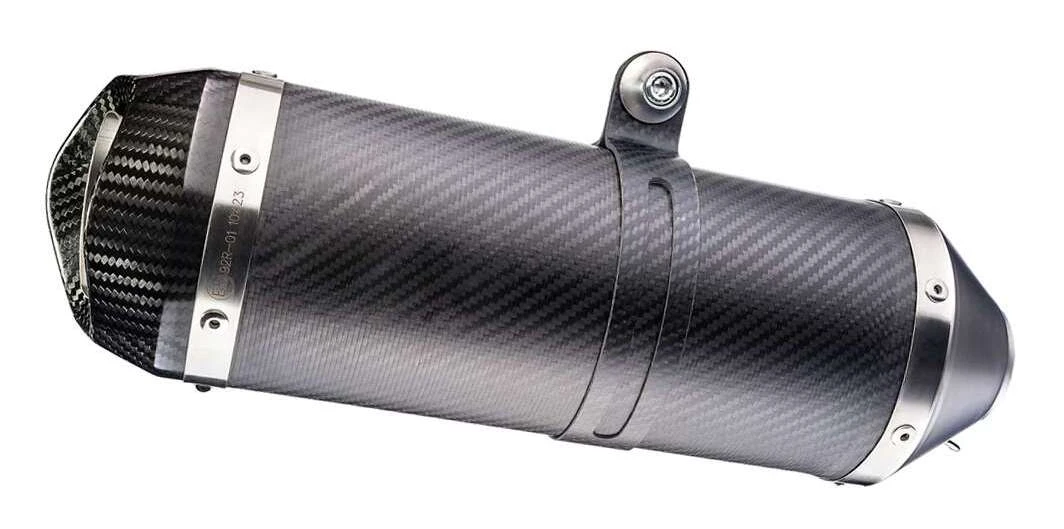 The stainless steel option features a sandblasted finish giving it an elegant and gritty titanium-like look. The carbon fiber version features an outer shell made of carbon fiber for those seeking a lightweight exhaust with a darker tone. Both versions of the LV ONE EVO are built to stand the test of time with the stainless bands and rivets and quality TIG welding. The muffler end cap is made entirely of heat-resistant carbon fiber, which gives the exhaust a decisive styling and greater resistant to high temperatures. The muffler clamp is also made entirely of carbon fiber and allows for a flawless installation.