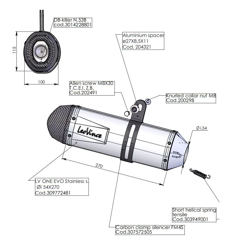The Leo Vince LV One EVO Exhaust is the ideal combination of Italian styling with modern performance. The inlet cap and internal chambers are manufactured from AISI 304 stainless steel, which means it’s not only lightweight but also tough and impact-resistant. The exhaust’s oval shape with clear and unique lines gives the silencer a unique compact profile.