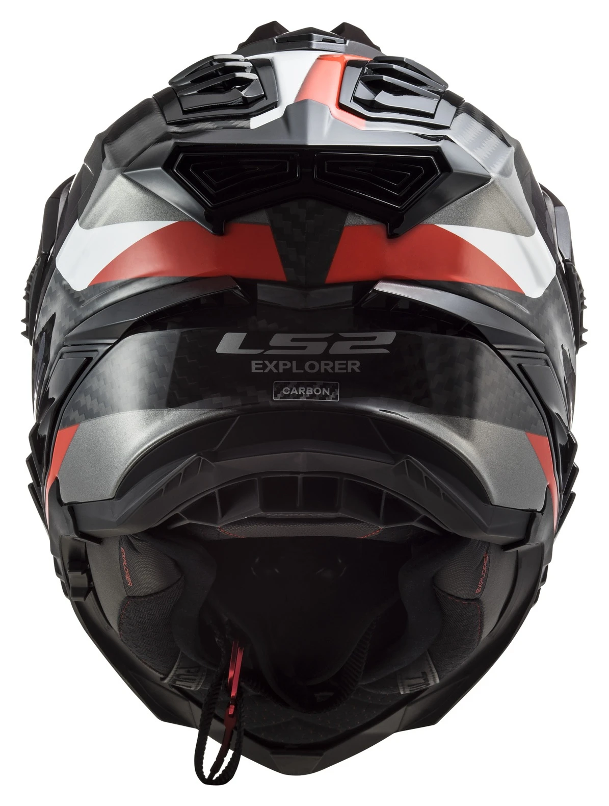 The LS2 Explorer Carbon brings state of the art high performance Carbon Fiber shell technology. Offering a plush, technical fabric interior with 3D laser cut cheek pads for high mileage comfort. The Explorer Carbon features ultra-wide eye ports for maximum vision and a drop-down sunshield. The peak is designed with large ports for maximum air flow. Fully adjustable ventilation helps maintain control over the elements to keep you cool and comfortable.