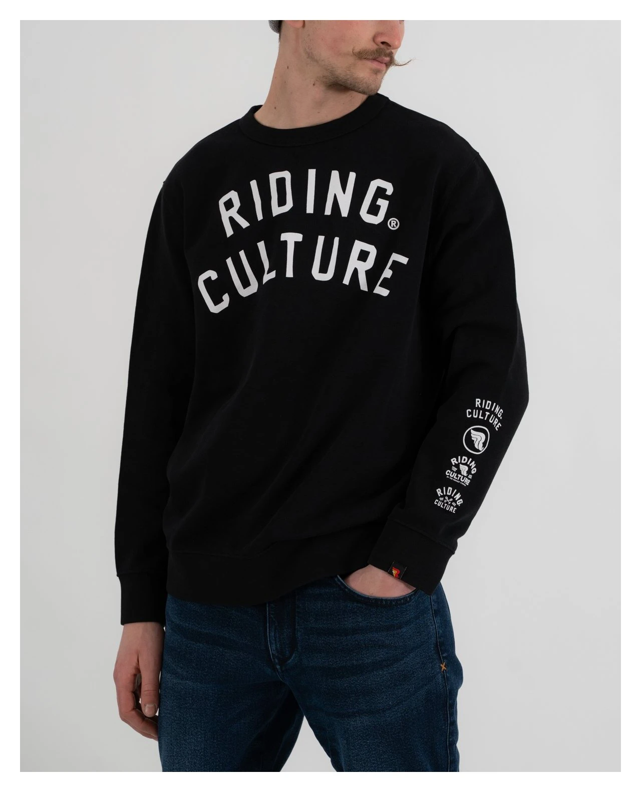 Support Riding Culture’s brand on colder days with their cotton logo sweatshirt.