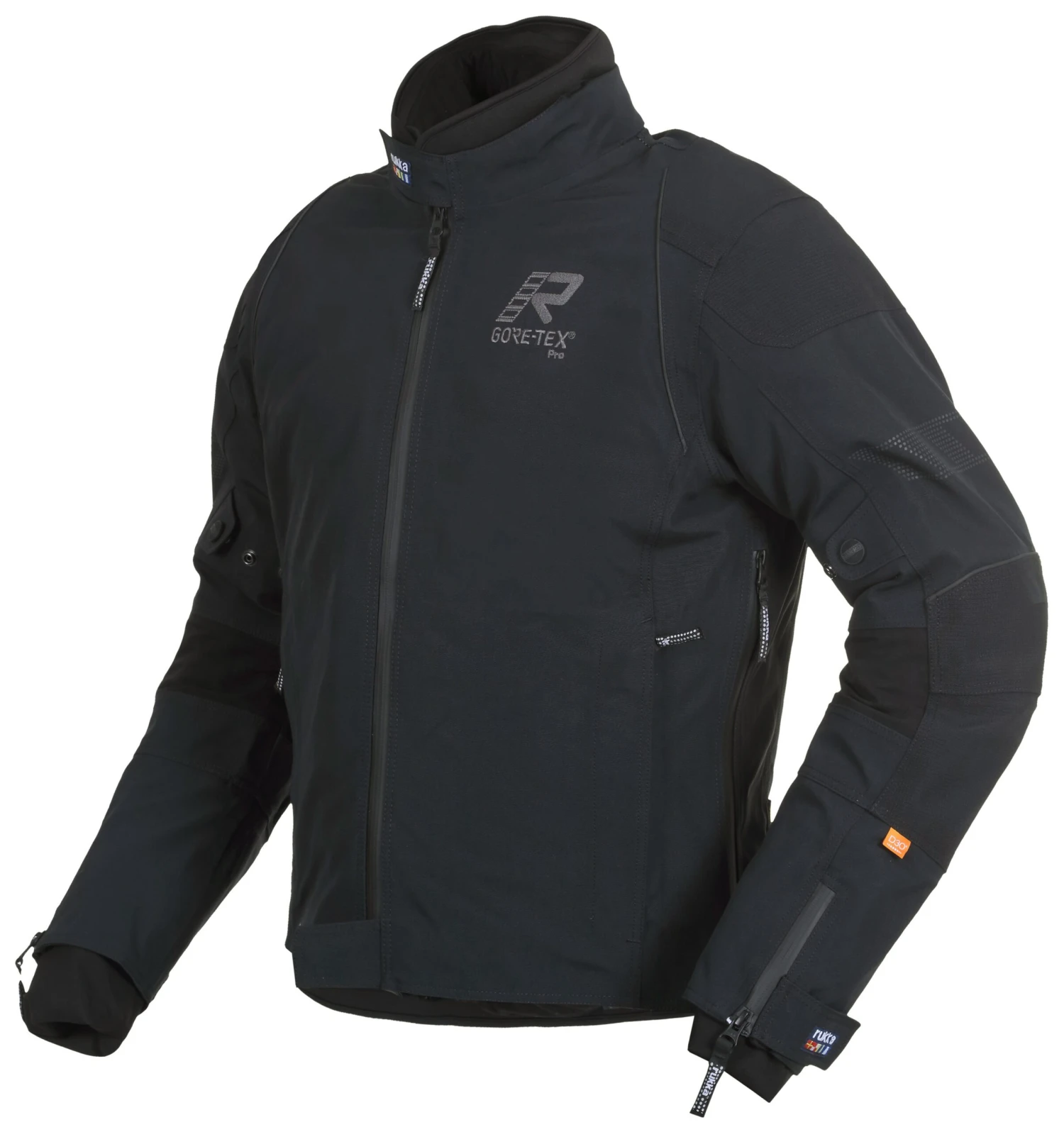Gore-Tex Pro backs a substantial Cordura shell for top of the line protection from wind, rain and even asphalt. An extra layer of Armacor at the elbows and shoulders add to the abrasion resistance at these key impact areas. Zippered vents at the sides of the torso and the back keep air flowing to cool down your body temperature. Zip up and add in the removable thermoreflective inner liner to take on cold wet conditions. A complete set of elbow, shoulder and back D3O protectors soak up impact energy. The latest technology and materials make up the Rukka Armarone Jacket so determined riders can have gear with the grit to match.