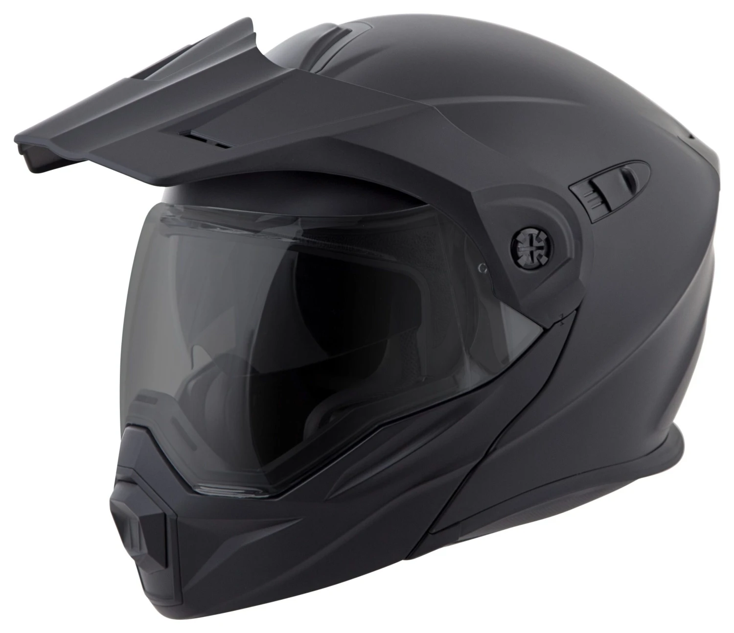 Scorpion has redefined a segment, melding the best features of touring helmets with the versatility of an off-road lid. Scorpion EXO-AT950 Helmet is the all-in-one swiss army knife of the helmet world. The modular chin bar allows you to relieve your claustrophobia or ask for directions while the off-road style peak and large eye port deflects roost, blocks the sun and allows you to wear goggles when tearing up the trails. Additional features such as a Everclear anti-fog face shield and Speedview drop-down internal sun visor keeps your vision clear and ready for whatever is around the next corner. If you’re going to be hitting the highway, the peak visor is easily removed to give you an aerodynamic profile so you can bug out at speed. Eyeglass compatible cheek pads and a KwikWick II liner ensures total comfort.
