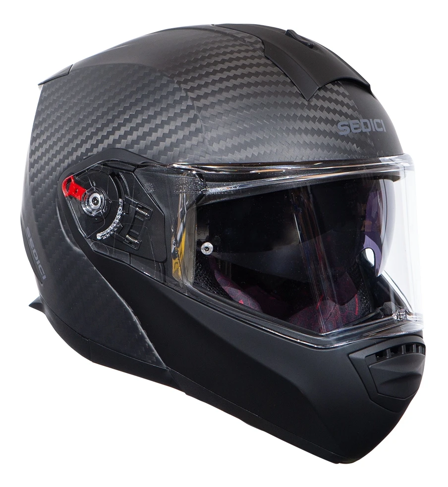 Now in its second iteration, the Sedici Sistema 2 Carbon Modular Helmet returns with improved features and performance in a sleek, heavily revised package. The 6k carbon fiber shell is molded into an aerodynamic shape for reduced turbulence and lift, creating a comfortable high speed riding environment. The Sistema 2 Carbon’s vent scheme and remapped EPS air channels route fresh air from front intake vents to rear exhaust ports – keeping the rider cool at all speeds. A stronger, re-engineered hinge and post mechanism for the modular chin bar helps the helmet achieve overall DOT and ECE safety certifications.