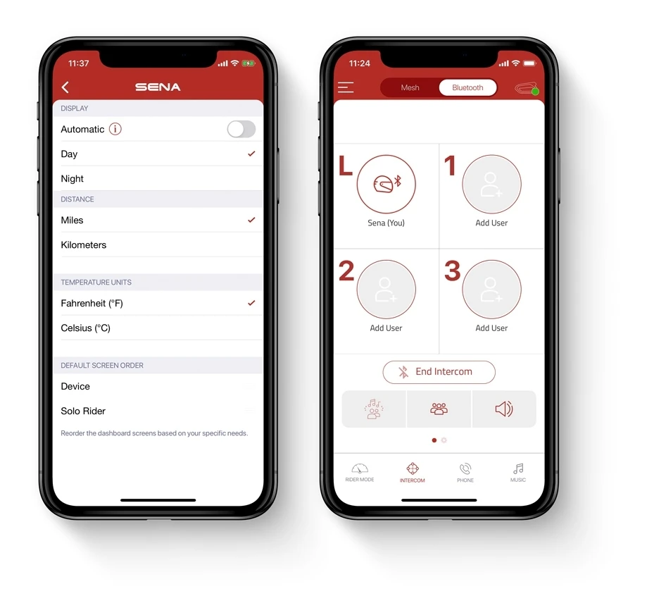 - Sena Motorcycle app provides a way to visually configure and connect to other riders