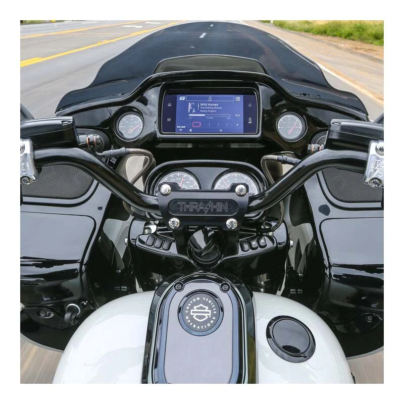 The first step in converting your bagger into a real performance machine is getting your hands up and forward where you need them. This sturdy riser adapter from Thrashin Supply allows you to run any of their straight or pullback risers on your Road Glide!