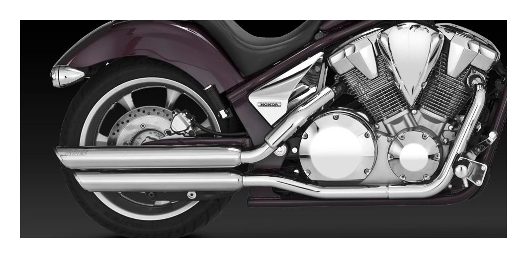 For arguably the most stylish execution to come out of the Honda cruiser line, Vance & Hines has developed just the right exhaust system to match. Power Chamber equipped Twin Slash is a slip-on exhaust system, integrating Vance & Hines proprietary Power Chamber technology, designed to improve performance throughout the powerband, and styled with dual mufflers encased in 3” twin slash heatshields.
